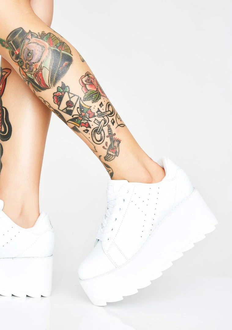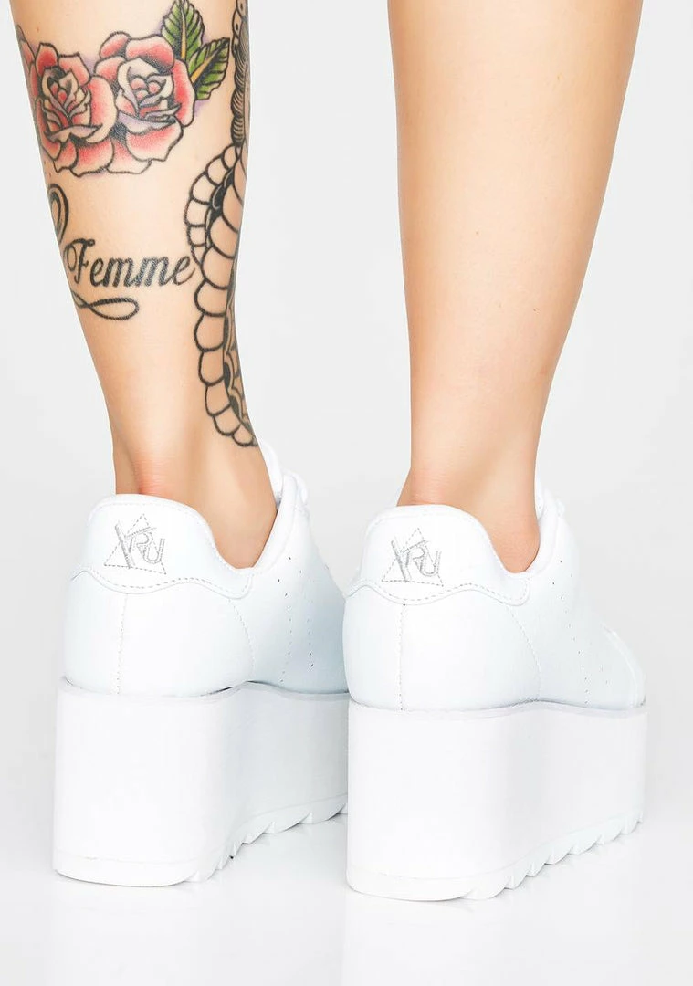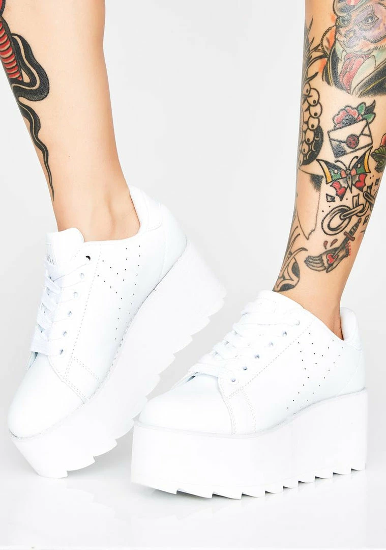 are liftinΓ’ΒΒ us higher and hiiigher, kitten! These awesome platform sneakers feature an exxxtra soft Γ’ΒΒn bouncy white 100% vegan leather construction, lace ups, and a nice Γ’ΒΒn high lightweight treaded platform to make sure ya stay miles above tha rest.