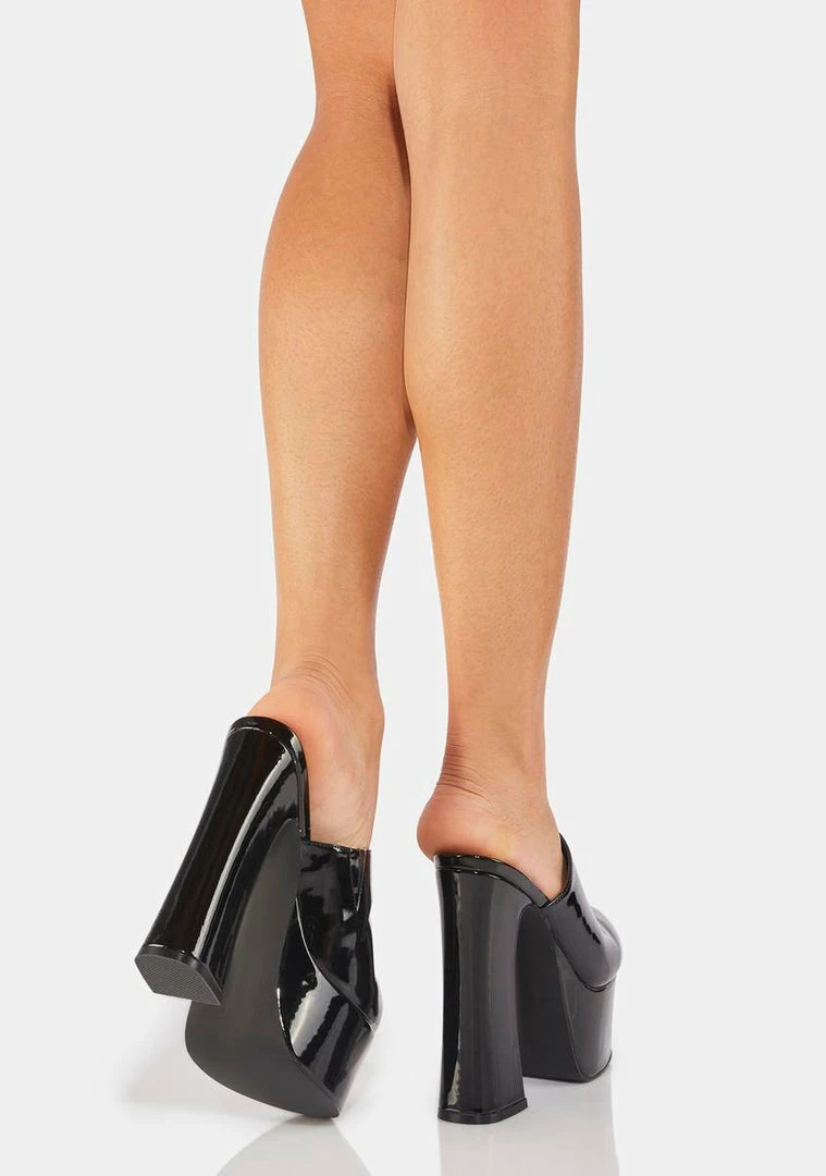 cuz you’re out of this world, babe! These platform clogs have a patent vegan leather construction, chunky block heels, and rounded toes.