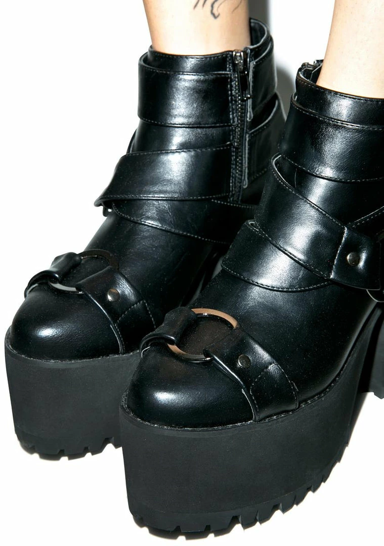are in love wit chu. These supa soft vegan leather BBรขยยs have a hanging lock charm at yer ankle and multiple O-ring accents. Be careful not to stomp on everyoneรขยยs hearts with the signature Eva sole featuring 4รขยย heels and 2 1/2″ platforms. Complete with exposed side zipper closure, lock รขยยem down bae.
