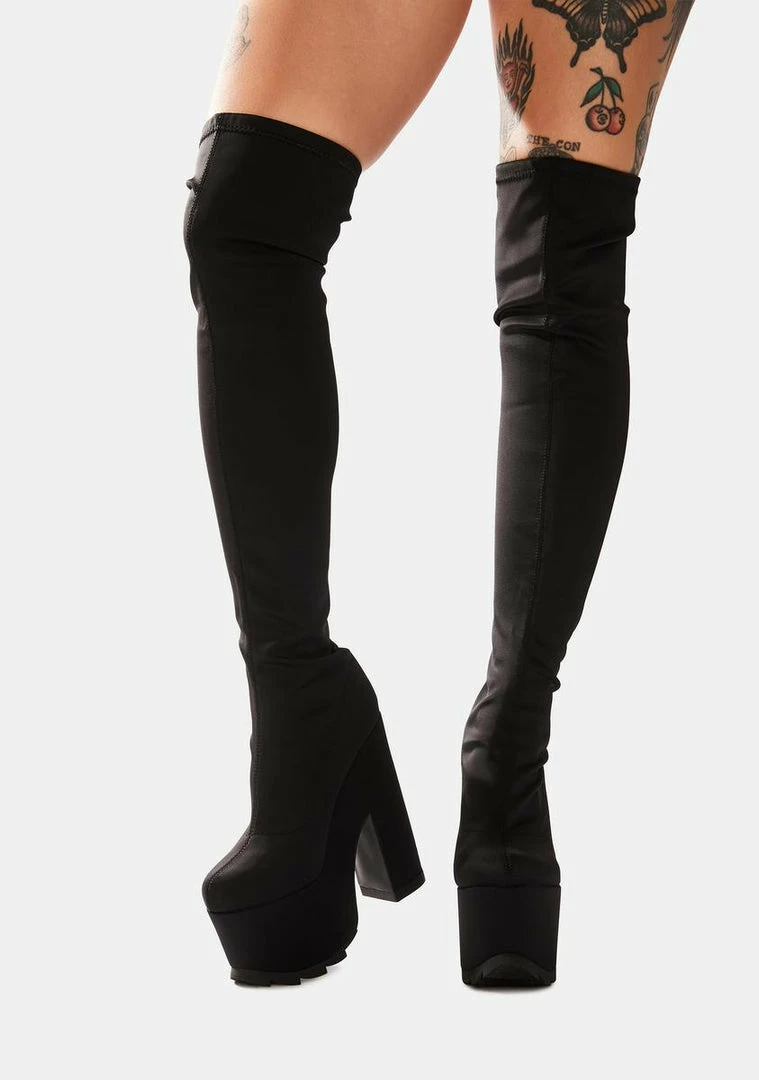 are a bewildering beauty. Pull on these exxxtra smooth Nรขยย stretchy bbs constructed from a ultra smooth nylon/spandex blended material with an easy elastic leg opening. Featurinรขยย staggering covered 6รขยย inch heels and 2รขยย inch platforms with badass textured tread to make sure ya stay up above the rest.