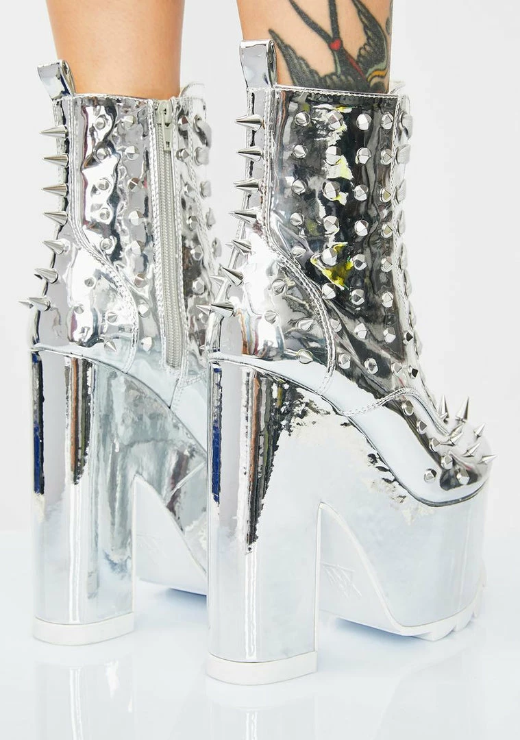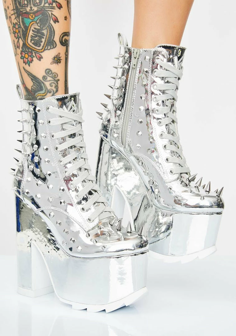 cuz they can look, but they canΓ’ΒΒt touch! Make Γ’ΒΒem keep their distance in these metallic platform boots that have rubber treaded soles, adjustable lace-ups, side zip closures NΓ’ΒΒ deadly spike studs all ova.