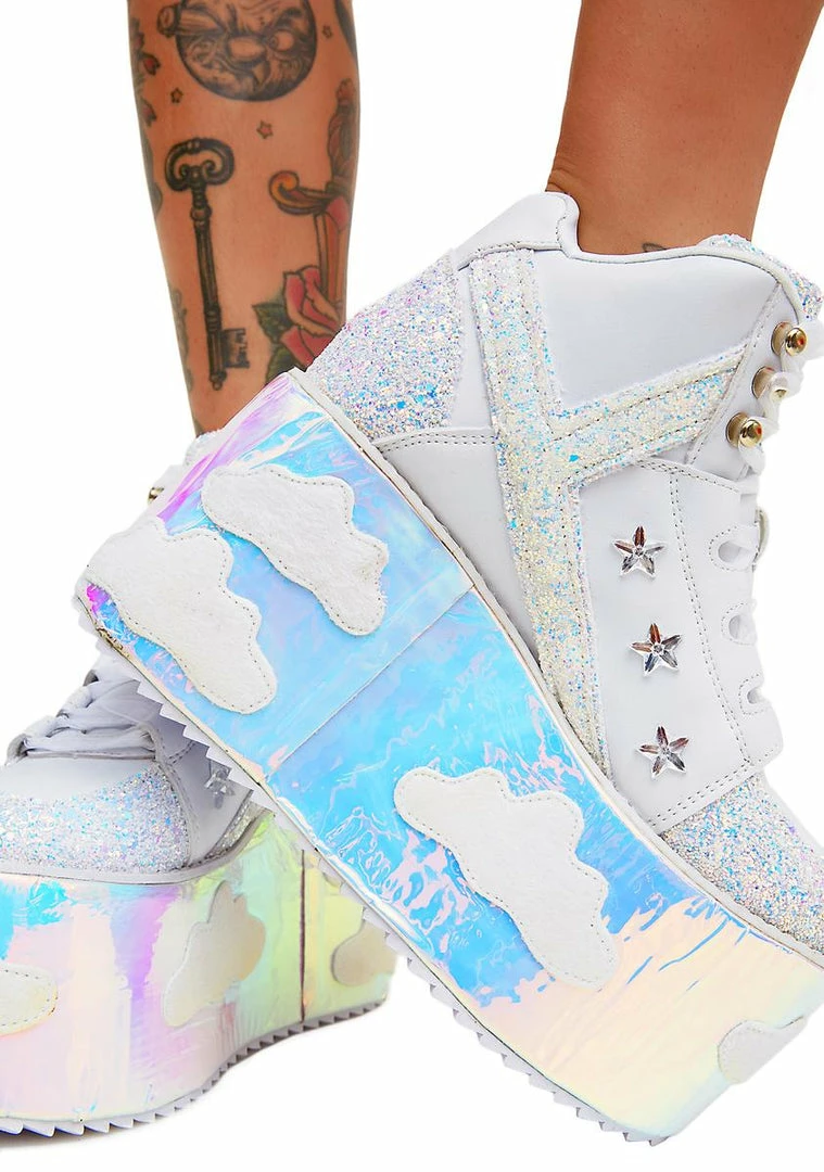 got ya shininΓ’ΒΒ like a diamond. These dope platforms have supa thikk iridescent soles with cloud patches and sparkly glitter panels on the top NΓ’ΒΒ sides.