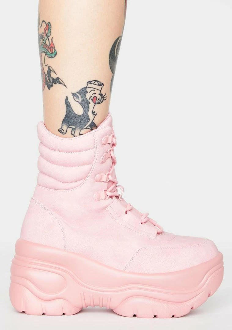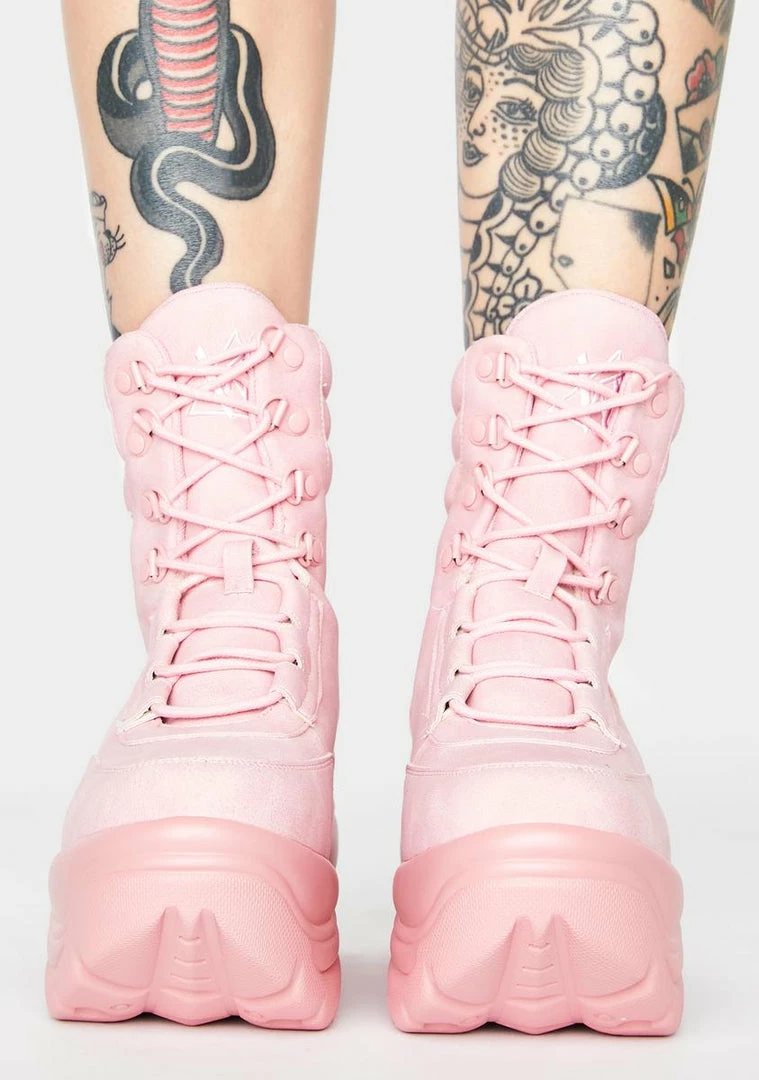 cuz you got รขยยem so high off the ground, babe! Stay turnt up in these dope hi-top sneakers that have pink uppers, thicc platform soles Nรขยย lace-up closures.