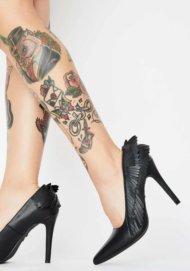 now you’re REALLY in shoe heaven! These fly kicks feature a pair of cut and molded wings along the outside that will put some serious lift in yer stride. With classic tapered toes, pointed pump heels, and a luxurious silky smooth lining, even cloud nine won’t be good enough for you Angel.