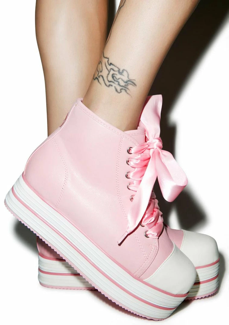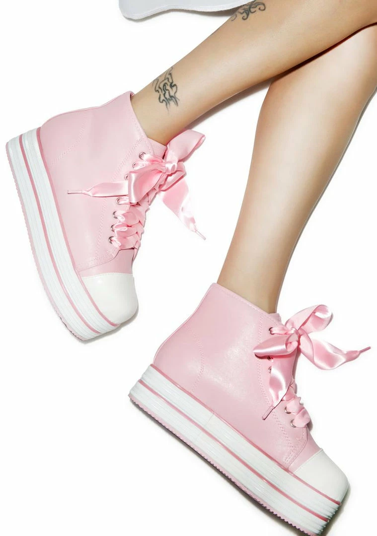 …can we get much higher? Cuz weΓ’ΒΒre so highhhhhΓ’ΒΒ¦ off of how adorable ya are in these platform sneakers featuring a veggie leather upper and classic appeal. With a 2 ΓΒ½Γ’ΒΒ platform with striped detailing in between, and a cute satin tie up to keep ya all together, this BB is ready to reach new levelz.
