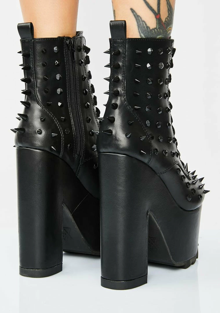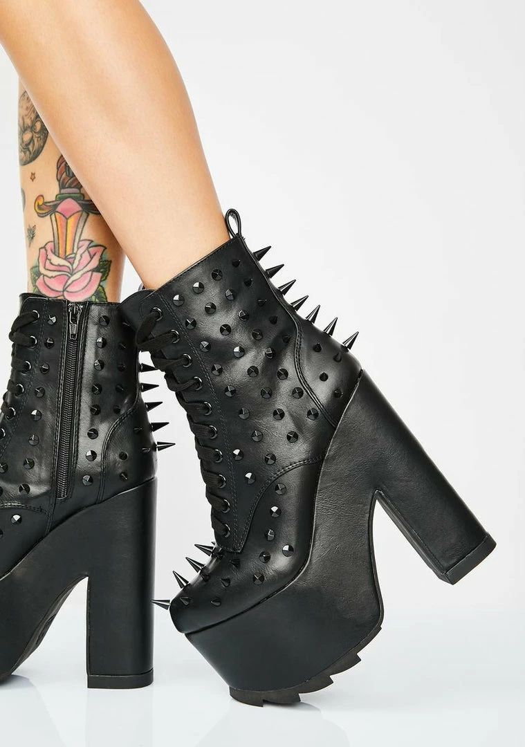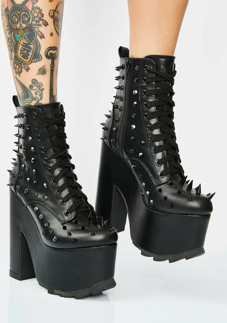 cuz they can look, but they canΓ’ΒΒt touch! Make Γ’ΒΒem keep their distance in these wicked platform boots that have rubber treaded soles, adjustable lace-ups, side zip closures NΓ’ΒΒ lethal spike studs all ova.