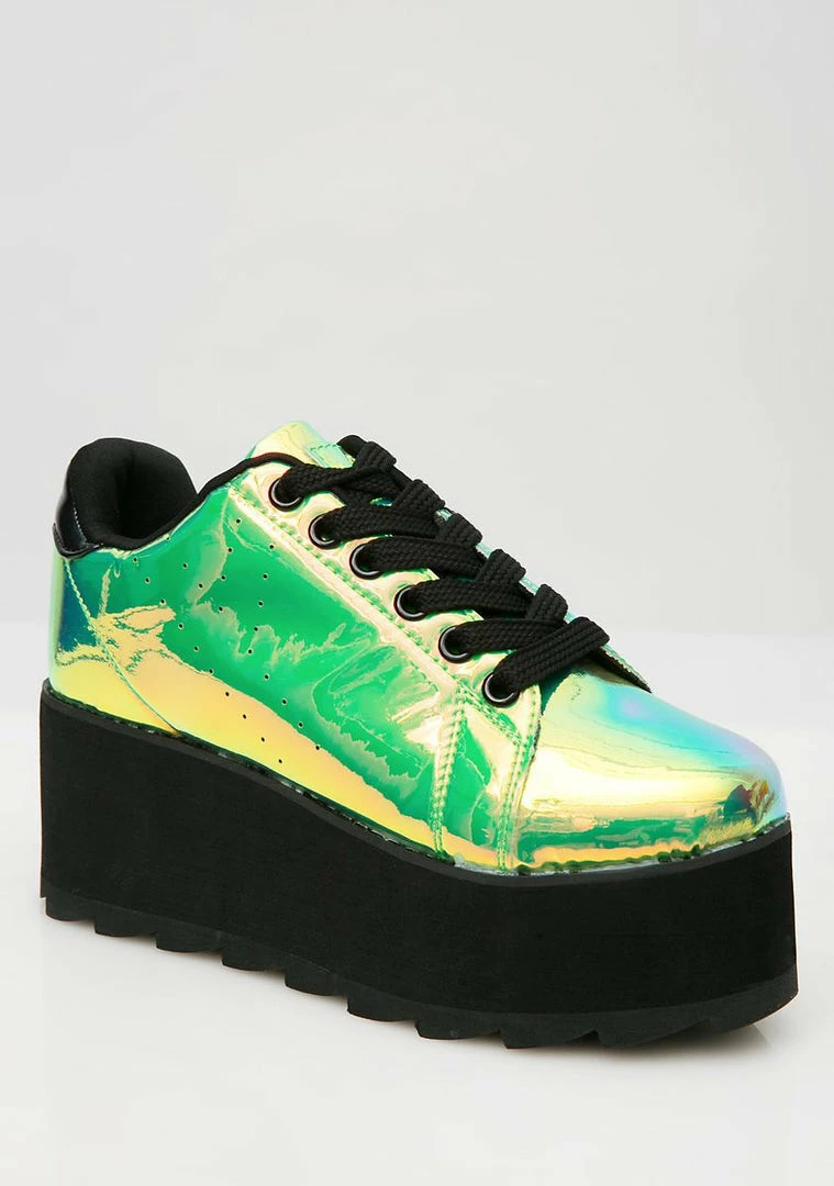 cuz ur out of this world bb. Rock these babiez with round toes, green holographic all ova, a perforated detail on the sides, rubber soles and lace-up closures.