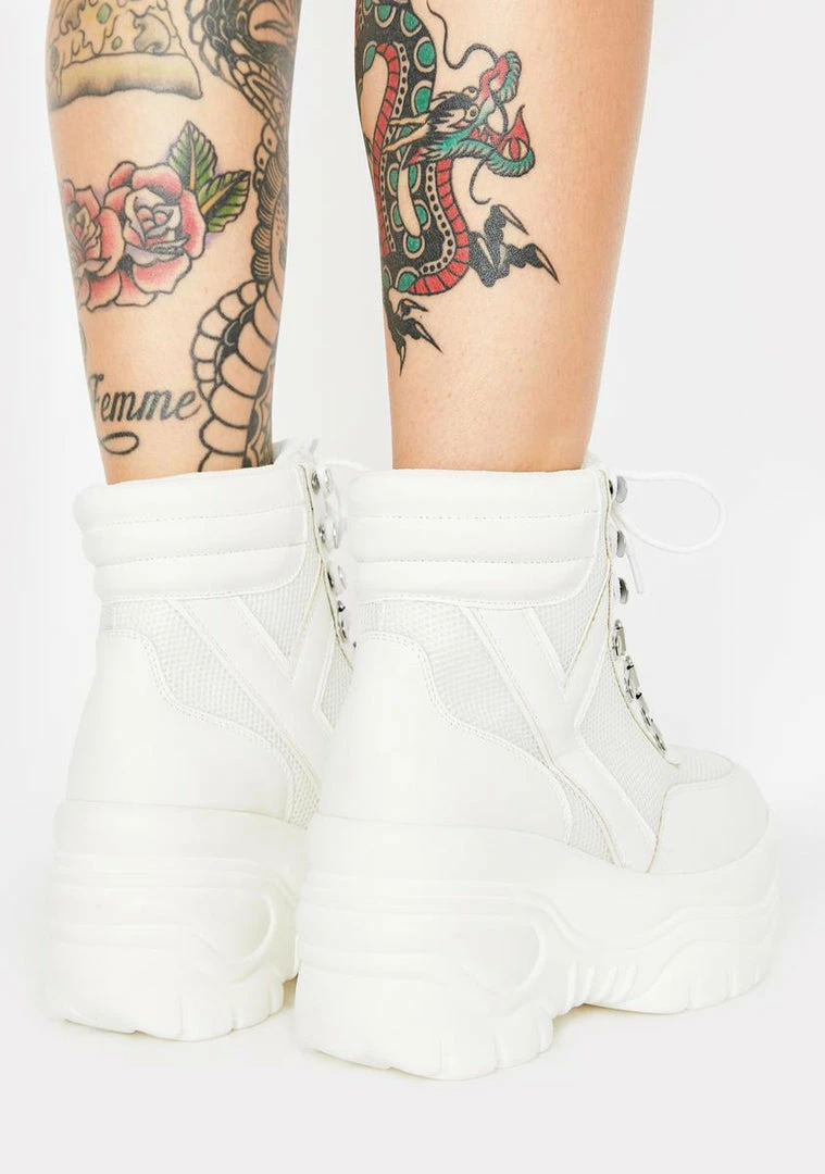 will have ya blazinΓ’ΒΒ through cyberspace! Take it to the maxxx in these high top platform sneakers that have chunky AF soles, padded mesh uppers NΓ’ΒΒ adjustable lace-up closures.