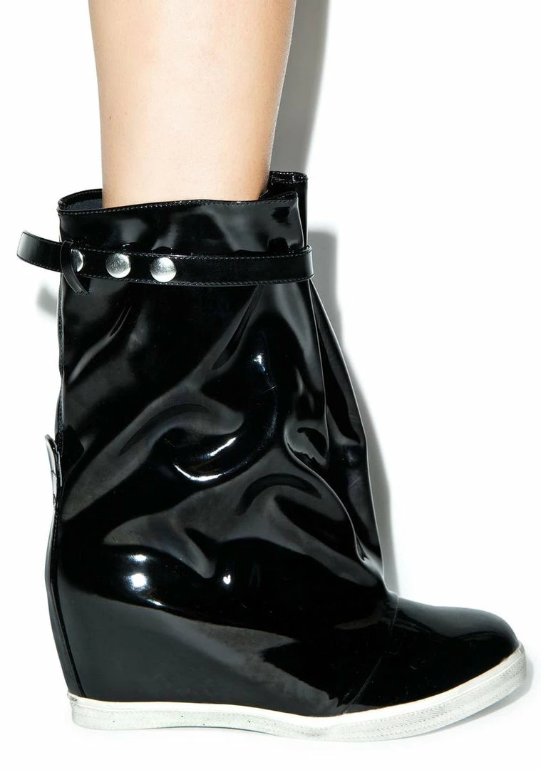 Y.R.U. Rain Wedge Boots, It’s rainin’. It’s pourin’. The old man… Who gives a fukk about the old man; yer gonna be hella fly in these dope rain boots! These boots feature a waterproof black patent upper, adjustable side strap closure and a distressed rubber midsole. BB are also gonna give ya the boost ya need to face the storm thanks to a 3″ hidden platform. Everyone dreads a rainy but with boots this sikk, well, let it rain!