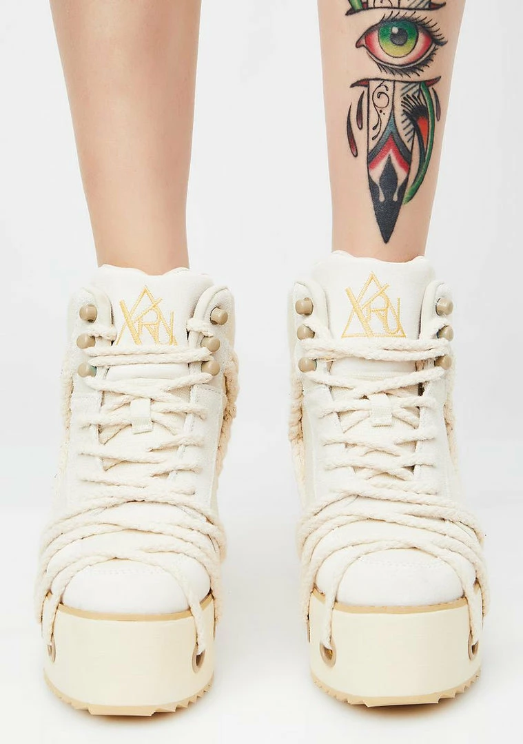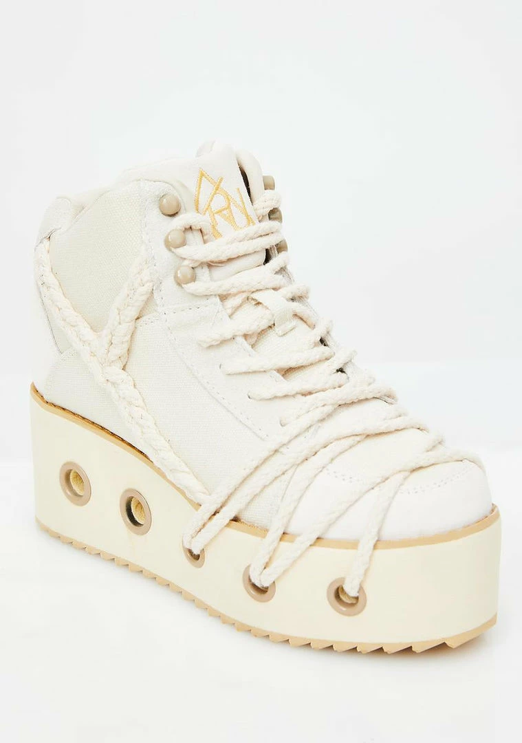 Γ’ΒΒcuz ya like beinΓ’ΒΒ tied up. These funky sneakers have a textured sole with laces runninΓ’ΒΒ through sikkk decorative holes and a rope design on the sides.