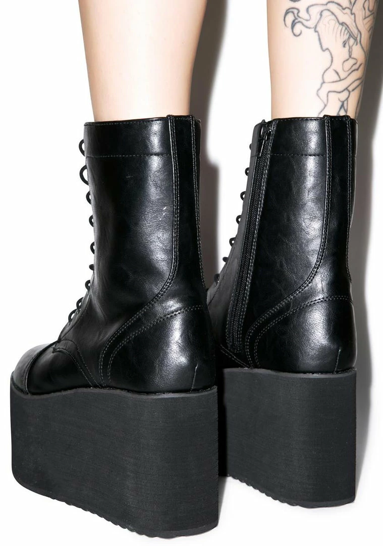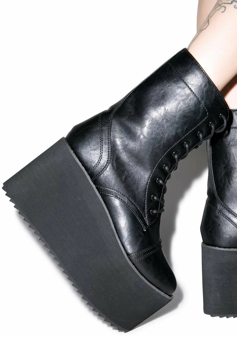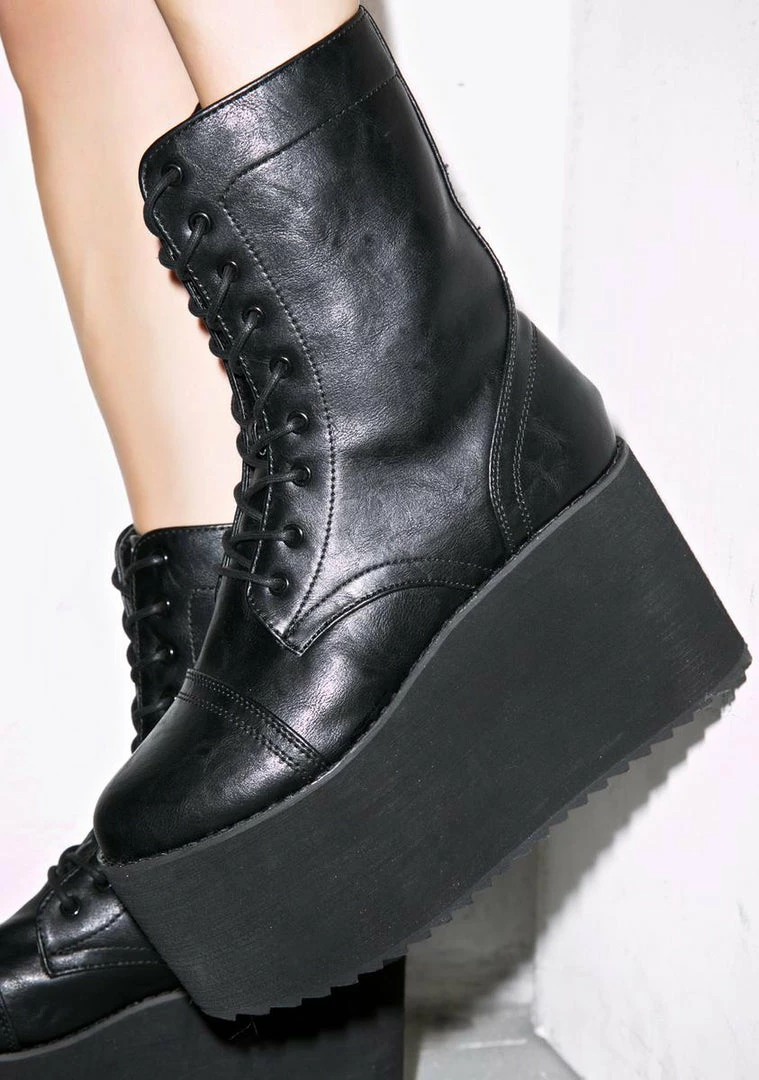roll right over everyone with these badass platforms on yer feet. Constructed outta super soft and smooth vegan leather with lightweight 4â heels and 3â platforms and front lace closure.